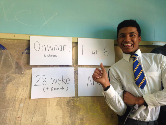 We are currently busy with our Healthy Sexuality program at a High School in Bredasdorp. Each grade 10 class will get six different lessons which include, why should we say no to sex, how do we say no to sex, what is a healthy relationship, sexually transmitted diseases, soul connections during sexual relationships , questions & answers.